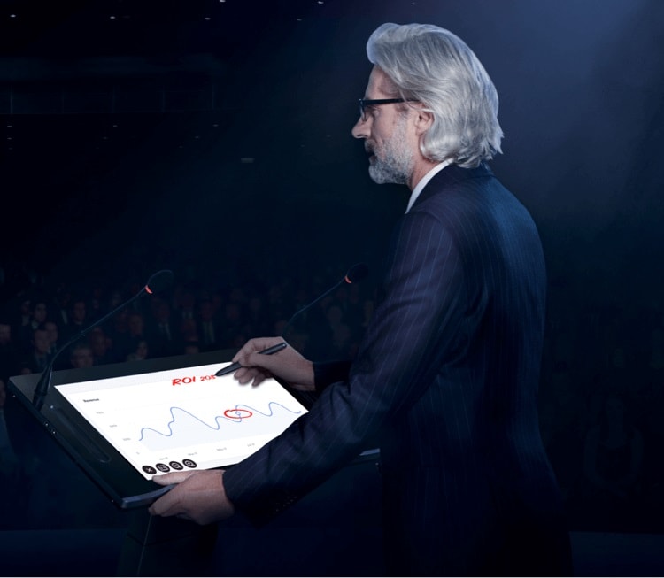 Người thuyết trình có thể ghi chú trực tiếp trên bục phát biểu thông minh Maxhub SL22MC