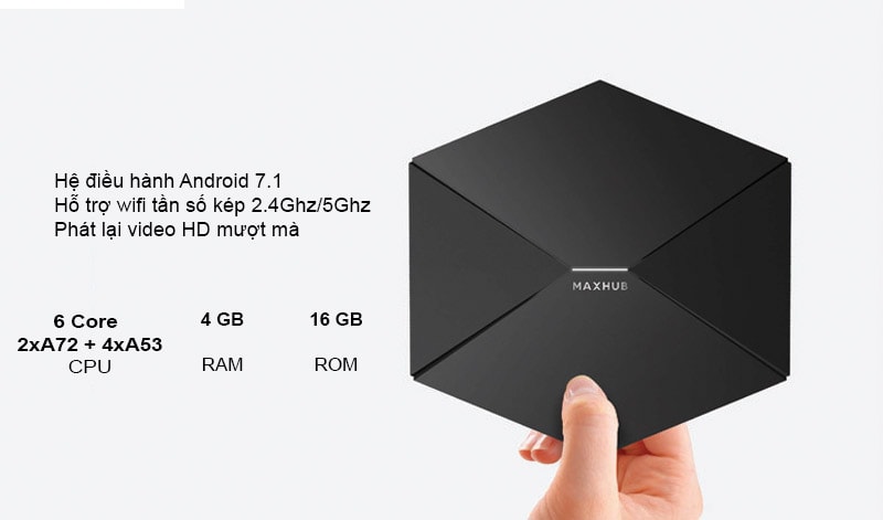 Hệ thống Android 7.1, dung lượng lưu trữ cực lớn, hỗ trợ Wi-Fi tần số kép 2.4GHz / 5GHz, không giật hình, xem video HD mượt mà.