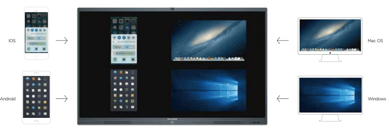 Chỉ với 1 click chuột, video và hình ảnh không mất dữ liệu có thể được trình bày trong 0,09 giây. Một hình ảnh có thể được hiển thị đồng thời trên hai màn hình. Công nghệ tương tác đa màn hình MAXHUB hỗ trợ chiếu cùng lúc 4 thiết bị đồng thời trong thời gian thực, hiển thị cho bạn so sánh dữ liệu rõ ràng. Hoạt động đồng bộ với thiết bị di động làm cho trải nghiệm thuyết trình và giao tiếp ngoài sức tưởng tượng của bạn.
